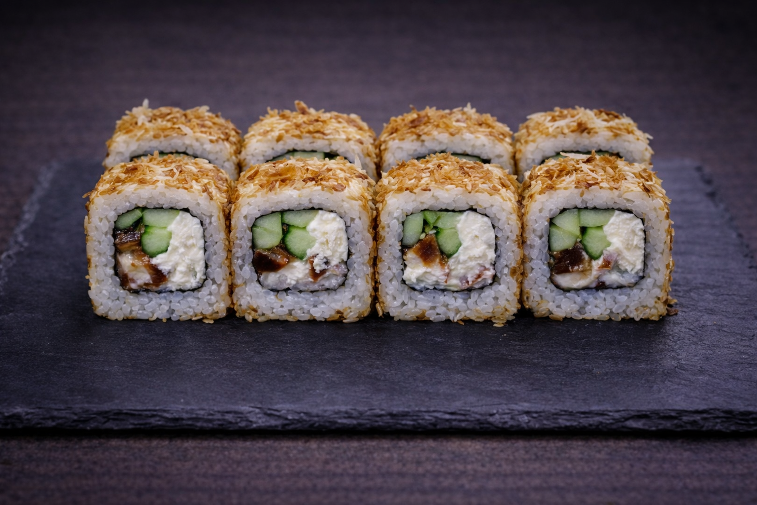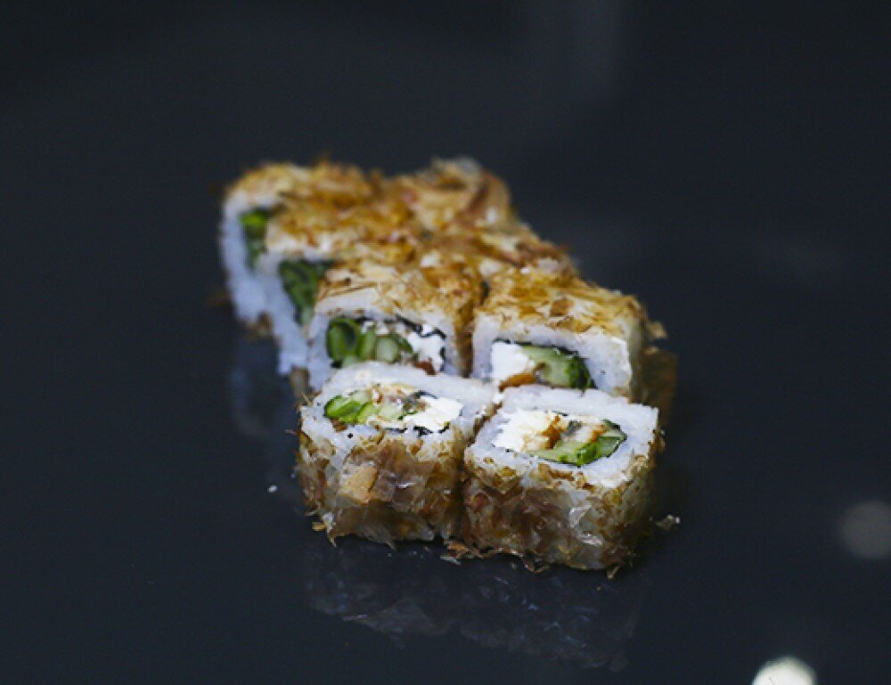 Классический ролл с насыщенным вкусом угря и лёгкой свежестью огурца, в аппетитной обсыпке из стружки тунца.