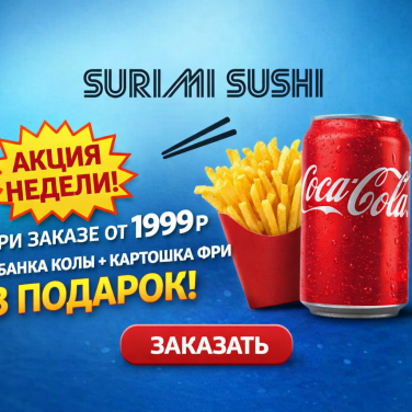 В Surimi Sushi всегда можно заказать вкусные роллы и сеты ещё выгоднее. 🎁